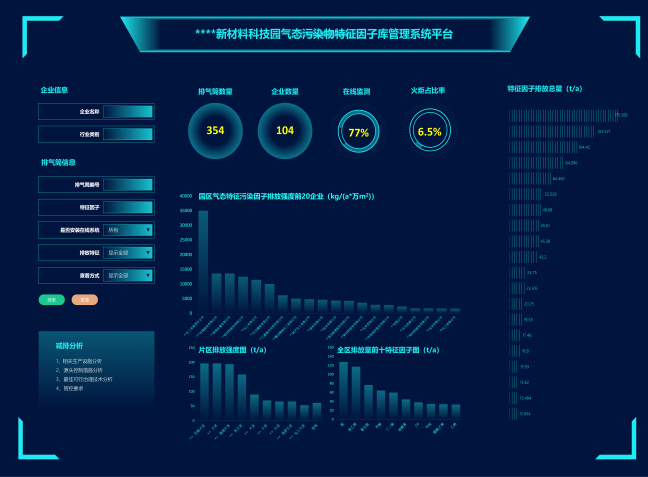 為摸清某化工園企業(yè)排放的廢氣種類、來源、分布等污染情況,對園區(qū)內(nèi)100多家化工企業(yè)共300多個(gè)有組織排氣筒的排放情況進(jìn)行系統(tǒng)化摸排分析及采樣監(jiān)測,真實(shí)地反映廢氣排放的來源裝置、工藝、排放環(huán)節(jié)、處理設(shè)施等關(guān)鍵信息,明確各企業(yè)有組織廢氣污染物的排放特征,準(zhǔn)確、全面地為每個(gè)排氣筒排放物質(zhì)清單和特征因子建檔。通過建立因子庫大數(shù)據(jù)平臺,實(shí)現(xiàn)了排放清單一張表、排放總量一本賬、排放分布一張圖,有效指導(dǎo)大氣網(wǎng)格點(diǎn)監(jiān)控系統(tǒng)建設(shè)、強(qiáng)化大氣監(jiān)控力度、提高環(huán)境監(jiān)管水平。
